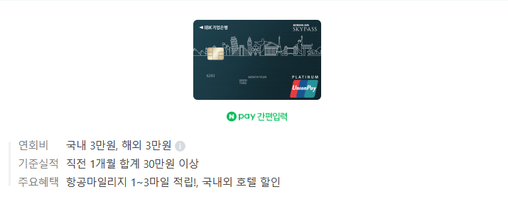 그 외 많은 카드들이 항공마일리지와 연결해서 혜택을 제공을 하고 있는데요.